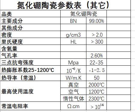 有良好的耐熱性(惰性氣體可耐溫2300℃,理論耐溫可達3000℃)、熱穩定性、導熱性、高溫介電強度,是理想的散熱材料和高溫絕緣材料。氮化硼的化學穩定性好,能抵抗大部分熔融金屬的浸蝕同時它也有很好的自潤滑性和良好的機械加工性。 氮化硼可用于制造坩堝及冶金用高溫容器、高溫散熱絕緣零件、高溫軸承、熱電偶套管及玻璃成形模具等,也可用于透波、透紅外線材料,以及耐燒蝕元器件。