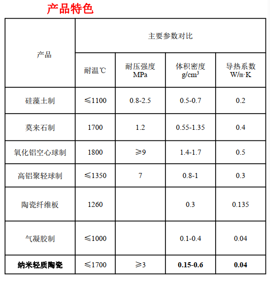 高溫隔熱保溫產(chǎn)品輕量化一直是相關(guān)領(lǐng)域研究的熱點(diǎn),若能突破高溫隔熱產(chǎn)品的輕質(zhì)化,就有可能實(shí)現(xiàn)高溫設(shè)備的輕量化以及隔熱產(chǎn)品結(jié)構(gòu)的優(yōu)化,為此我公司研發(fā)的耐高溫納米輕質(zhì)陶瓷不僅能夠滿足1700℃及以上環(huán)境應(yīng)用,并且實(shí)現(xiàn)產(chǎn)品的輕質(zhì)化以及高溫環(huán)境的超低導(dǎo)熱系數(shù)(對(duì)標(biāo)目前市場(chǎng)所有產(chǎn)品,具有巨大優(yōu)勢(shì))。